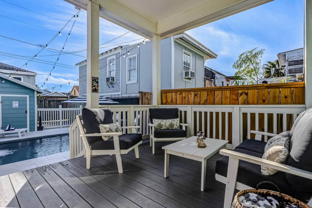 Escape to Galveston and enjoy the perfect vacation at our historic 3-bedroom vacation home. Centrally located the home is a short walk from the Strand Historic District, a 3-minute drive to the Galveston Seawall and minutes to the Pleasure Pier You’ll find plenty of amenities to make your stay enjoyable. Cool off in the refreshing outdoor pool, relax on the outdoor patio and unwind on the front porch while reading your favorite book. The kitchen is fully stocked for preparing delish meals for your family. The dining room has seating for your entire group to enjoy home cooked meals and create memories. When it’s time to relax, settle into the comfy living room and enjoy the smart TV, games and books. The home is perfect for families with children a baby gate, travel crib and high chair are included. Whether you’re planning a family vacation, a romantic escape, or a fun trip with friends, this Galveston vacation home is a wonderful blend of comfort and convenience, just moments away from the area’s best attractions. Embrace the charm of this coastal oasis and make lasting memories during your stay. Bedroom #1 King Bed with luxurious linens. Smart TV Seating Area Phone chargers Closet Dressers Bedroom #2 Sleeping for 5 guest Bunk Bed with queen, twin and single mattresses. Bedroom #3 Queen bed with luxurious linens. Smart TV Seating Area Phone chargers Closet Dressers